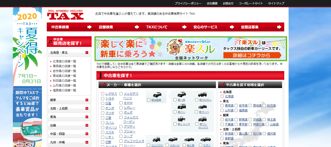 複数の店舗を構え、中古車販売に注力しているのが「TAX」です。中古車の検索サイトも運営しており、細か...
